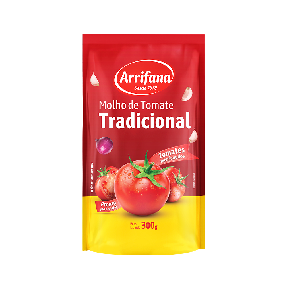 2. Por último coloque o molho de tomate Arrifana e mexa. Em uma travessa espalhe um pouco da carne. Coloque uma camada de massa.